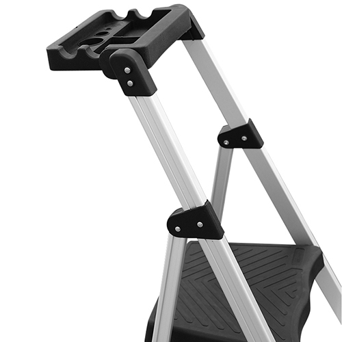 Thang ghế có bậc to bậc trên cùng dễ đứng và xử lý công việc, khay đựng dụng cụ to để được nhiều đồ