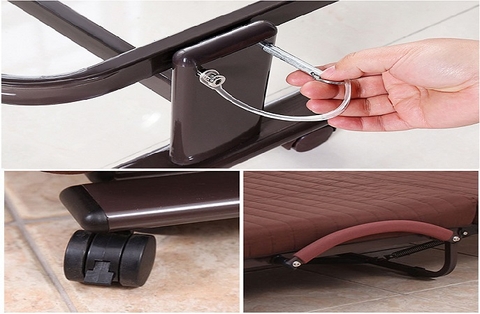 Giường có khóa chốt để chốt khi gấp gọn hay khi sử dụng.