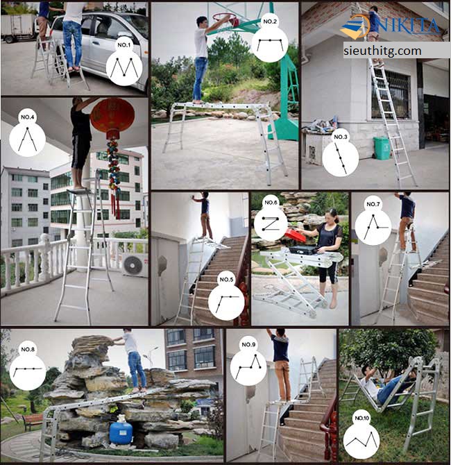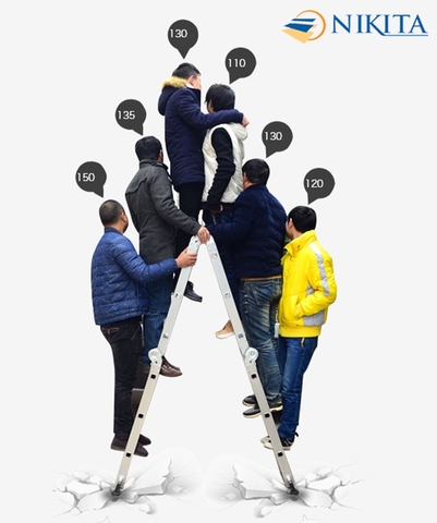 - Thang nhôm gấp 4 khúc NIKITA được tán 3 lần với công nghê đột dập tiên tiến nhất rất chắc chắn, tải trọng lớn, an toàn cao nhất