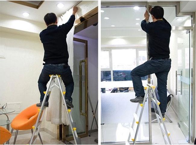 - Bậc thang bằng nhôm hộp - bậc trên cùng của thang to 28 cm x 17 cm dễ đứng, an toàn.