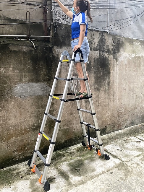 - Ngoài ra thang còn có 2 bánh xe giúp việc di chuyển thang dễ dàng hơn.