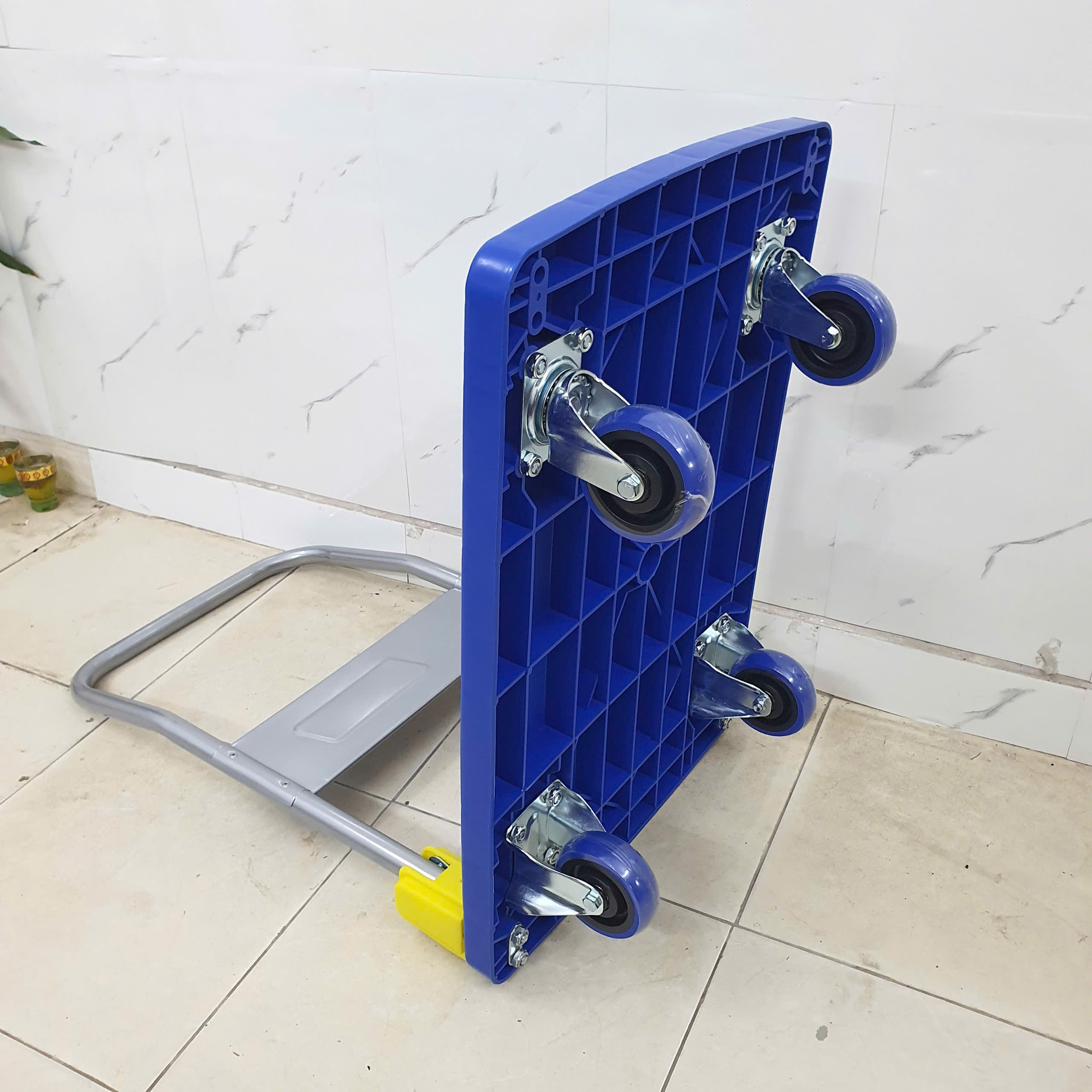 - Xe kéo hàng 4 bánh gấp gọn Feida KB-200 Chất liệu bền bỉ: Sàn nhựa PP chịu lực tốt, không bị gỉ sét, phù hợp sử dụng trong môi trường ẩm ướt hoặc kho lạnh.
