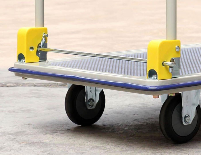 - Đặc biệt, tay cầm có thể gập gọn tiện dụng, giúp cất giữ dễ dàng Xe đẩy Jumbo được phủ nhựa trên bề mặt sàn màu xanh xám để chống trơn trượt.