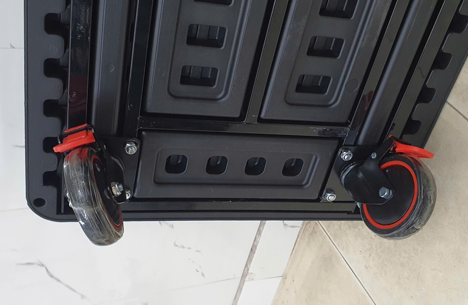 - Bánh xe vừa to vừa dày, càng xe bằng thép dày giúp xe chịu tải lớn , bánh làm bằng cao su nên đi êm hơn, độ ồn thấp.