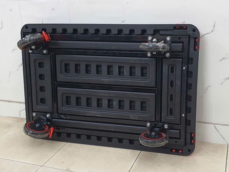 - Sàn xe: nhựa công nghiệp cao cấp chịu lực, màu đen, có gia cố thêm khung thép dưới sàn.
